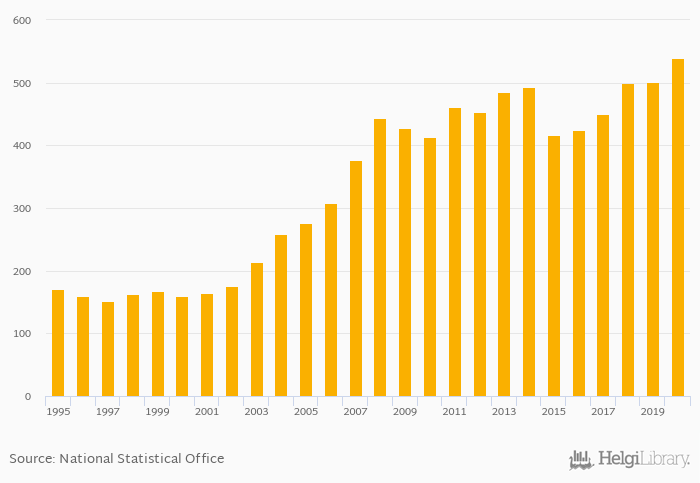 Historically, households' non-financial assets in Finland reached an all time high of USD 540 bil in 2020 and an all time low of USD 151 bil in 1997.