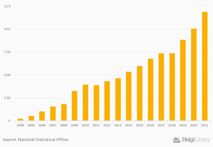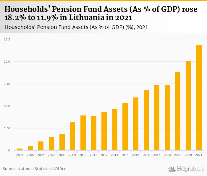 Households' pension fund assets as of GDP rose 18.2% to 11.9% in Lithuania in 2021, according to OECD.