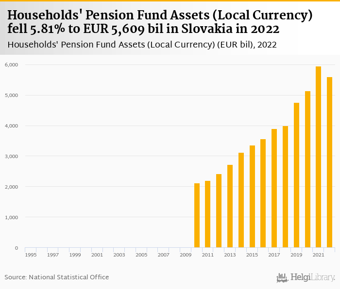 Households' pension fund assets fell 5.81% to EUR 5,609 bil in Slovakia in 2022, according to OECD.