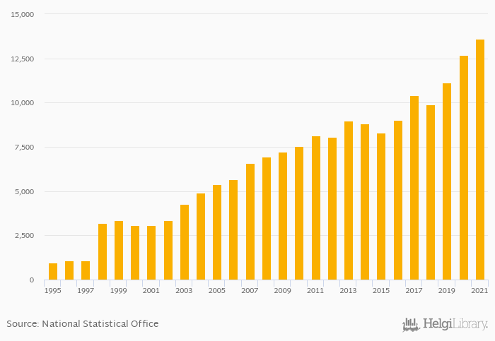Historically, households' pension fund assets per capita in Belgium reached an all time high of USD 13,593 in 2021 and an all time low of USD 962 in 1995.