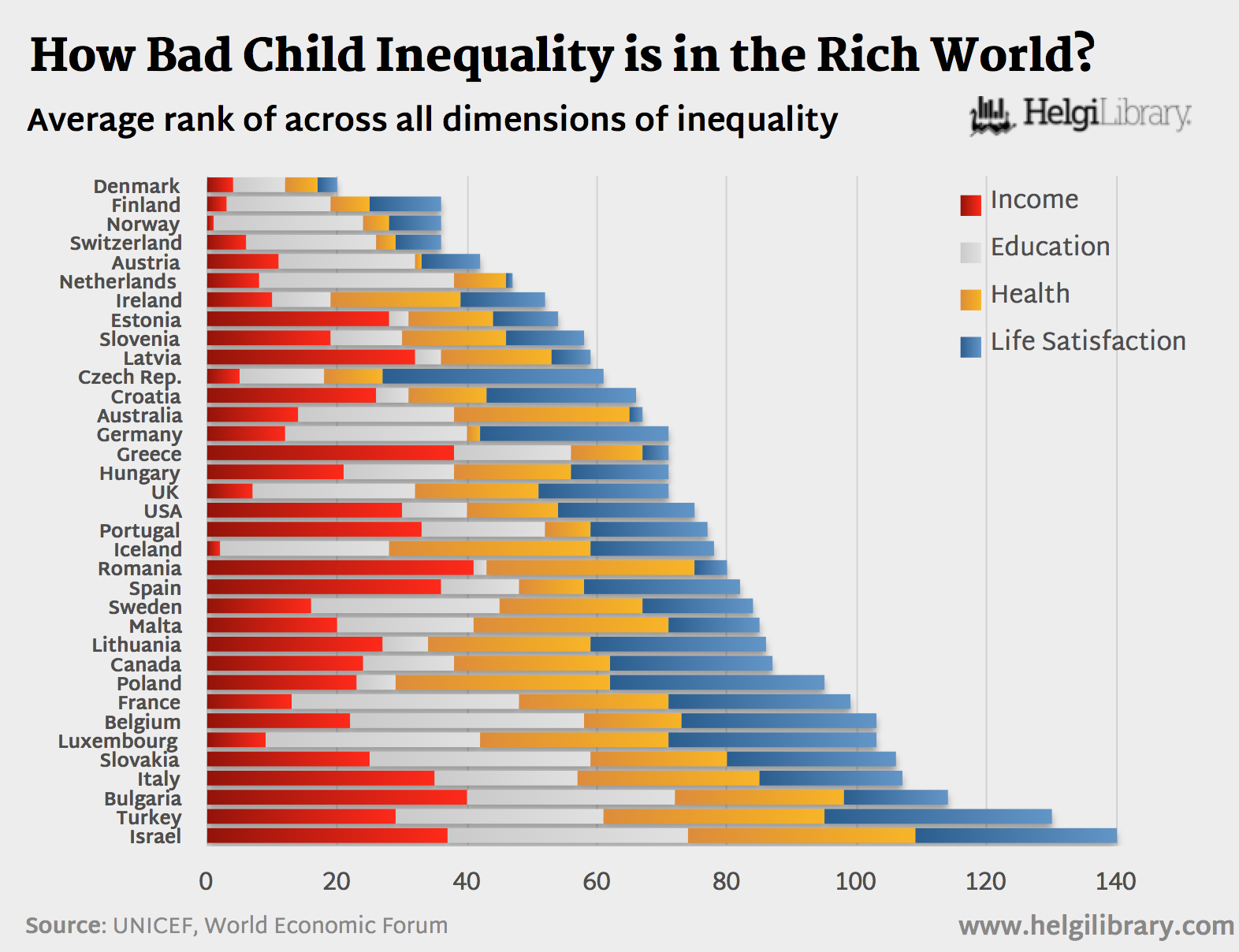 UNICEF ranked the wealthy countries based on an inequality in four areas: