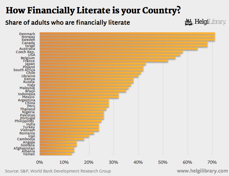 McGraw Hill Financial (which owns S&P), the World Bank, and Gallup have produced the S&P Global Financial Literacy Survey, which attempted to get an idea of how financially literate the world is by polling 150,000 adults in more than 140 countries.