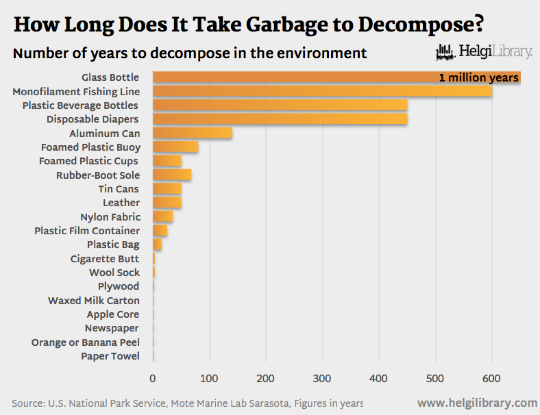 It should be noted that the rate of decomposition can depend upon landfill conditions. But the numbers don’t vary much.