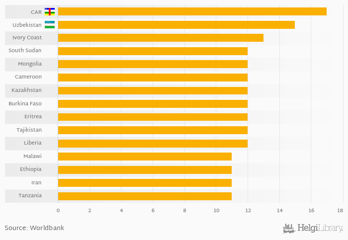 | Central African Republic | ... | ... | ... | ... | ... | ... | ... | ... | ... | ... | ... | 17.0 | 17.0 | 17.0 | 17.0 | 17.0 | ||||||