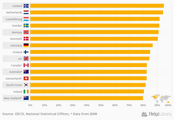 | Iceland | % | ... | ... | ... | ... | ... | ... | ... | ... | ... | ... | ... | ... | ... | 89.3% | 84.6% | 89.1% | 91.9% | 92.5% | |||