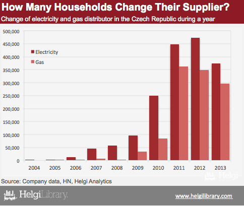 More than 374,000 households have changed their electricity supplier and nearly 300,000 households have changed their gas distributor in 2013. Despite fewer than in 2011-2012, this is represents 7-8% of total households. With more than 400,000 clients at the end of 2013, Bohemia Energy is the largest alternative electricity supplier in the Czech Republic.