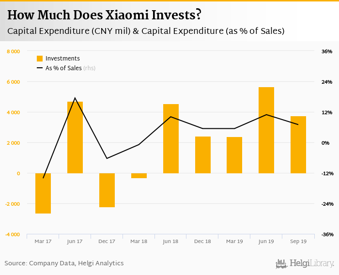 Xiaomi invested a total of CNY 3,738 mil in 3Q2019, down 0% compared to the previous year. Historically, between 1Q2017 - 3Q2019, the company's investments stood at a high of CNY 5,658 mil in 2Q2019 and a low of CNY -2,620 mil in 1Q2017.