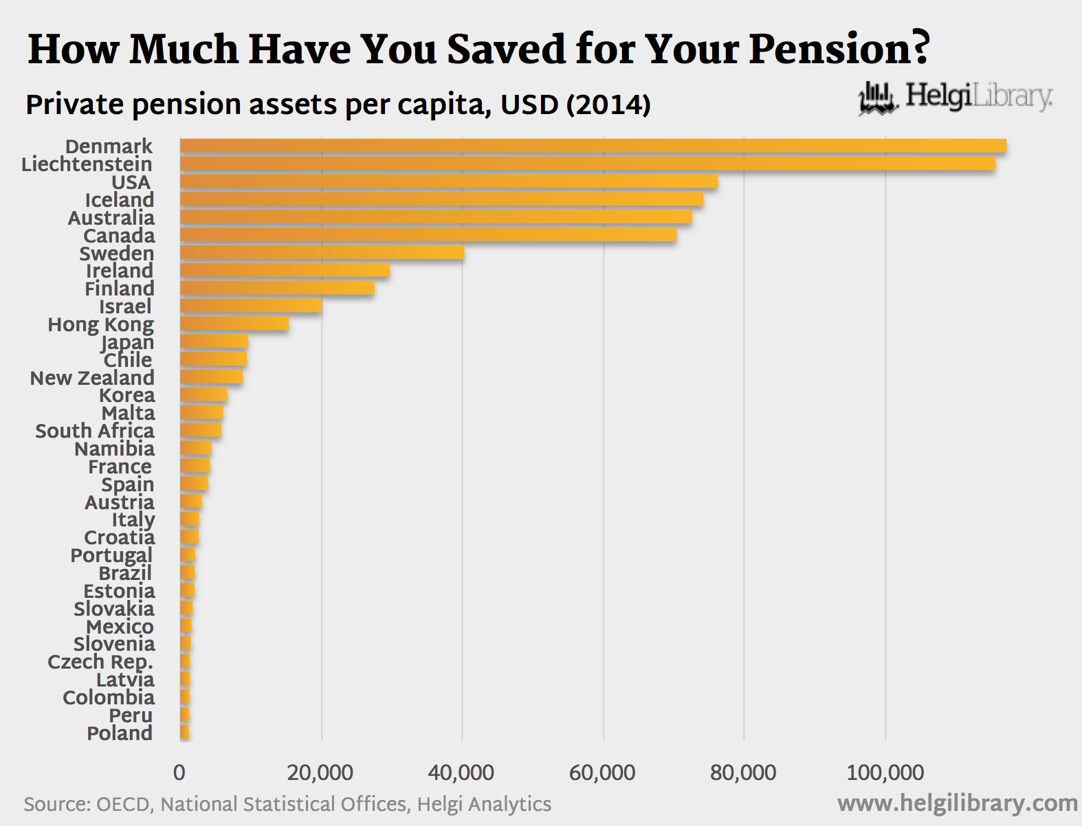 Pension fund assets are the biggest part of a household's financial assets in the most developed economies, exceeding 100% of the country's GDP. Pension funds’ assets exceeded USD 25 trillion in OECD countries in 2014.