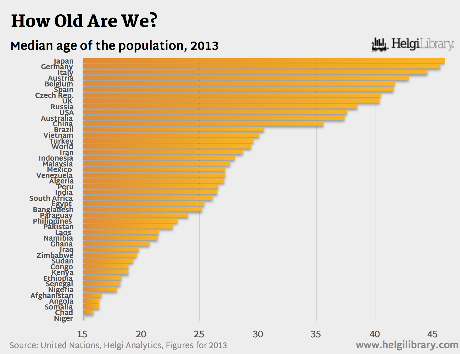 Humans are getting old. In 1800 your best bet was to live in Belgium which topped the life expectancy charts at 40 years. Average life expectancy grew from around 26 years in the Bronze Age to 48 years in 1955 and 67 years in 2010 and is expected to reach 73 years in 2025. There is of course a great inequality within the world. People live on average for just 32 years in Swaziland and 83 years in Japan.