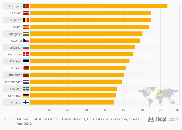 | Portugal | 61.1 | 65.5 | 69.8 | 74.2 | 73.7 | ... | ... | |||||||||||||||