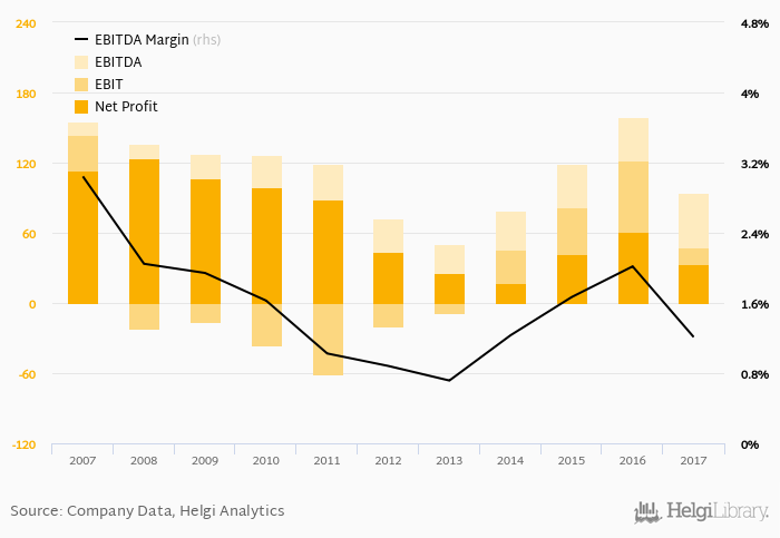 Historically, between 2007 - 2017, the firm’s net profit reached a high of CZK 123 mil in 2008 and a low of CZK 16.8 mil in 2014. Since 2012, the firm's net profit has decreased 24.4% or -5.44% a year on average.