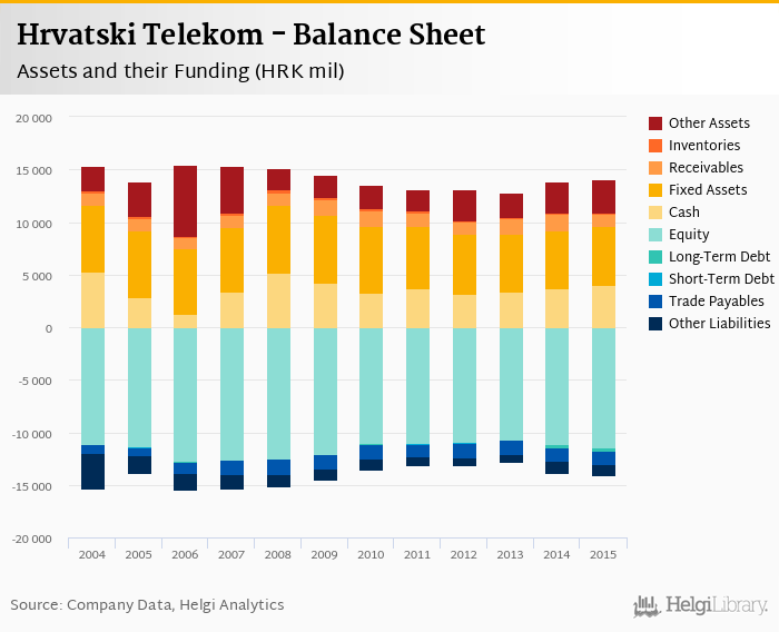 Current assets amounted to HRK 5,636 mil, or 40.0% of total assets while cash stood at HRK 4,033 mil at the end of 2015.