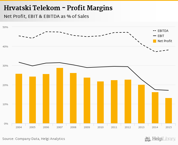 Hrvatski Telekom made a net profit of HRK 925 mil with revenues of HRK 7,017 mil in 2015, down by 19.1% and down by 0.213%, respectively, compared to the previous year.