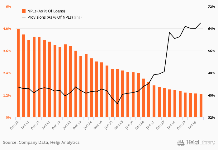 The bank created loan loss provisions worth of 0.346% of average loans in 2019-09-30. That's compared to 0.271% of loans the bank put aside to its cost on average in the last five years.
