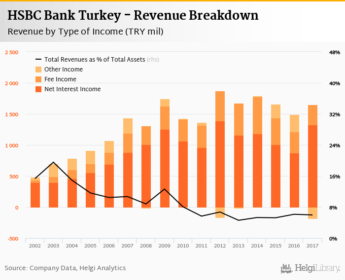 HSBC Bank Turkey generated total banking revenues of TRY 1,469 mil in 2017, down 1.74% compared to the previous year.