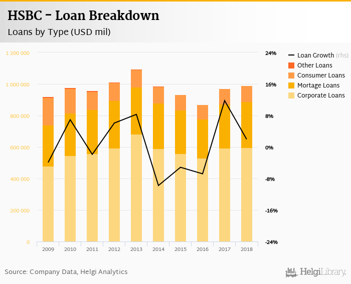 At the end of 2018, HSBC's loans accounted for 72.0% of total deposits and 38.4% of total assets.
