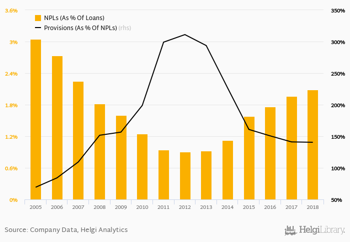 The bank created loan loss provisions worth of 1.38% of average loans in 2018. That's compared to 1.08% of loans the bank put aside to its cost on average in the last five years.