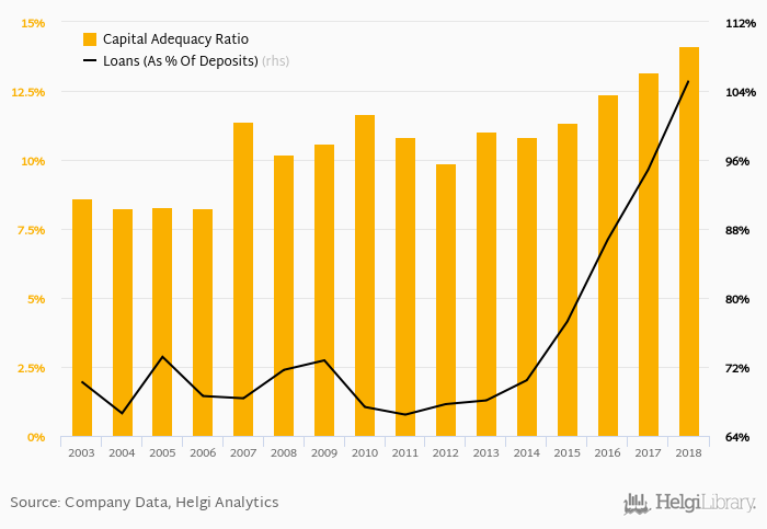 Bank's loan to deposit ratio reached 105% at the end of 2018, up from 94.9% when compared to the previous year. Some 10 years ago, loan to deposit ratio of the bank amounted to 71.7%.