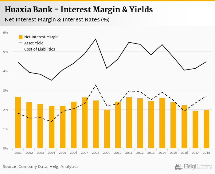 Comparing Huaxia Bank with its closest peers, Home Credit China operated in 2018 with a net interest margin of 17.2% in 2018, Qudian reached 15.7% and Lexin FinTech some 13.6%.