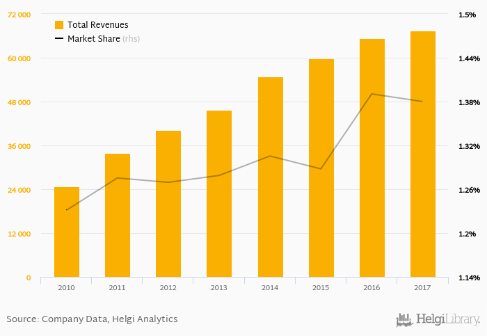 As a result, Huaxia Bank accounted for 1.38% of all bank revenues generated by banks in China in 2017. Historically, the bank’s market share in total revenues reached an all time high of 1.39% in 2016 and an all time low of 1.23% in 2010.