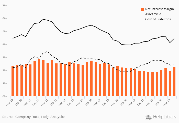 Historically, the bank’s net interest margin reached an all time high of 2.88% in 3Q2011 and an all time low of 1.86% in 4Q2017. The average margin in the last six quarters amounted to 2.02%.