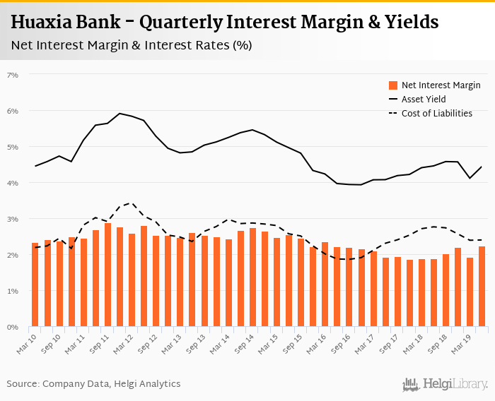 Huaxia Bank's net interest margin amounted to 2.24% in the second quarter of 2019, up from 1.91% when compared to the previous quarter.