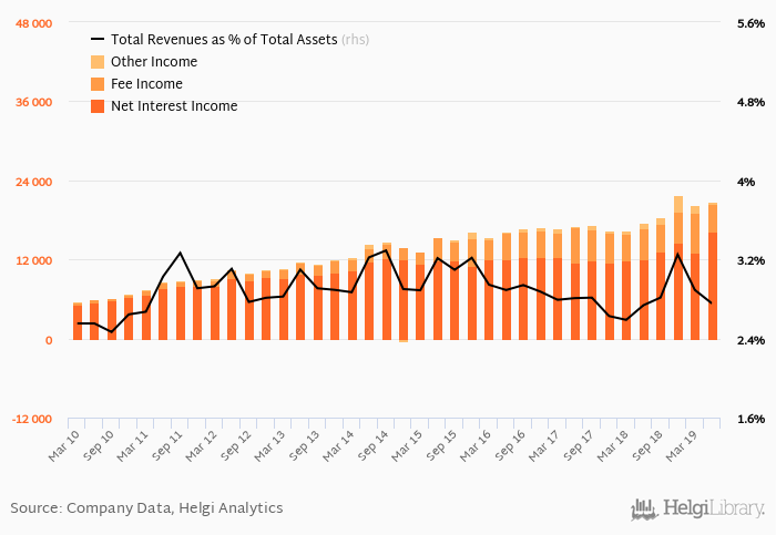 Bank's total revenues accounted for 2.75% total assets in the second quarter of 2019, up from 2.74% a year earlier.