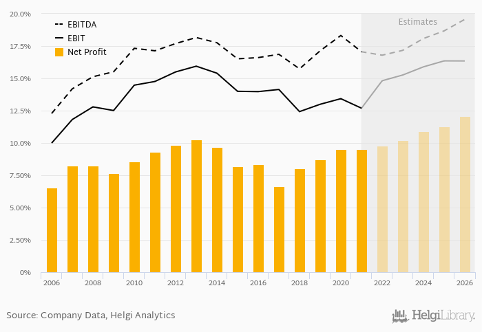 On the operating level, the EBITDA margin reached 17.1% and EBIT amounted to 12.7% of sales in 2021.