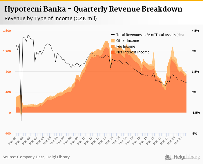 Hypotecni Banka generated total banking revenues of CZK 743 mil in the fourth quarter of 2024, down 16.1% when compared to the same period of last year and 4.93% when compared to the previous quarter.