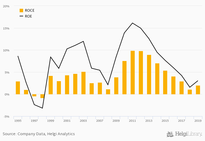 The result implies a return on equity of 3.05% and a return on invested capital of 2.01% in 2019. That is compared to an average of 4.49% and 3.09% over the last five years.