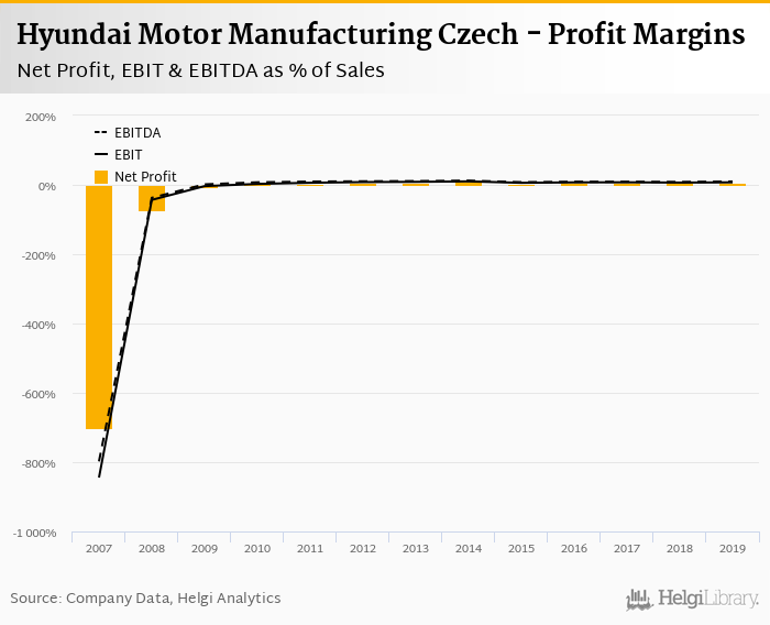 Hyundai Motor Manufacturing Czech made a net profit of CZK 7,387 mil with revenues of CZK 123,140 mil in 2019, up by 2.25% and down by 4.73%, respectively, compared to the previous year.