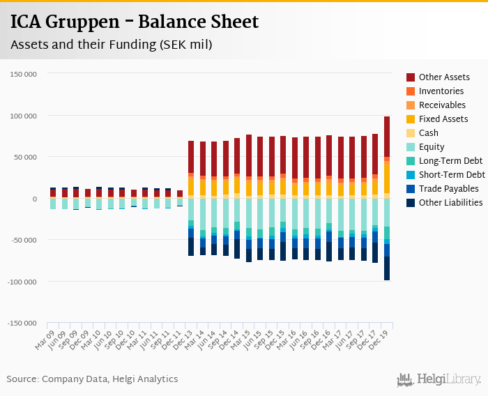 ICA Gruppen's total assets reached SEK 103,368 mil at the end of 1Q2020, up 5.03% compared to the previous year.