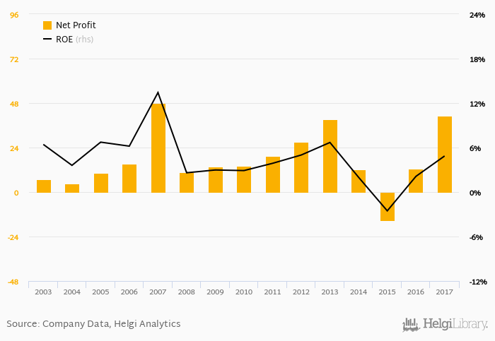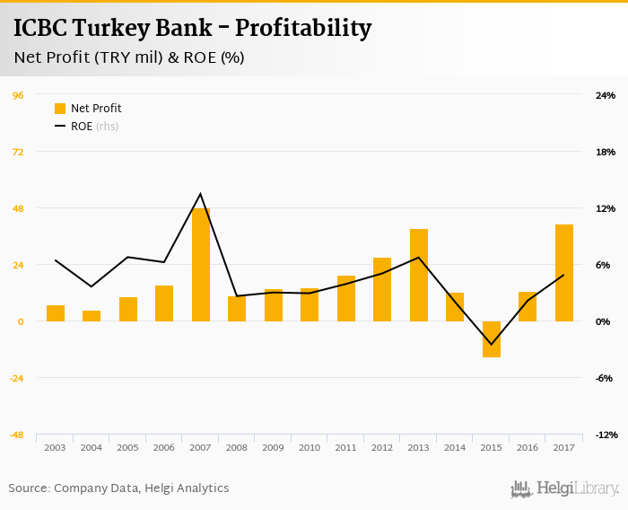 ICBC Turkey Bank made a net profit of TRY 41.1 mil in 2017, up 229% compared to the previous year. This implies a return on equity of 4.86%.