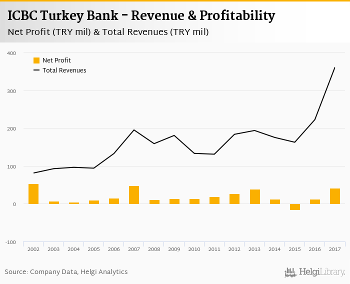 ICBC Turkey Bank made a net profit of TRY 41.1 mil under revenues of TRY 361 mil in 2017, up 229% and 62.3% respectively compared to the previous year.