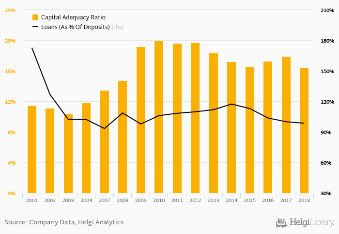 Bank's loan to deposit ratio reached 98.4% at the end of 2018, down from 99.9% when compared to the previous year. Some 10 years ago, loan to deposit ratio of the bank amounted to 108%.