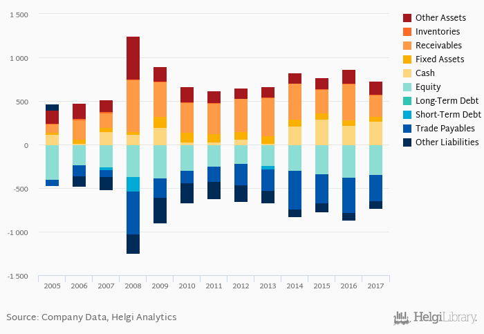 Net debt against equity is down 50.9 pp from five years ago (-30.2%). The ratio against EBITDA decreased from -0.566x seen in 2012 to -8.07x.
