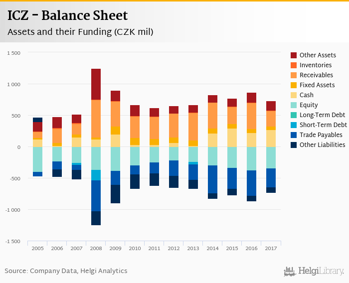 ICZ's total assets reached CZK 732 mil at the end of 2017, down 15.1% compared to the previous year.