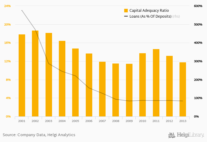 Bank's loan to deposit ratio reached 83.9% at the end of 2013, down from 86.5% when compared to the previous year. Some 10 years ago, loan to deposit ratio of the bank amounted to 287%.
