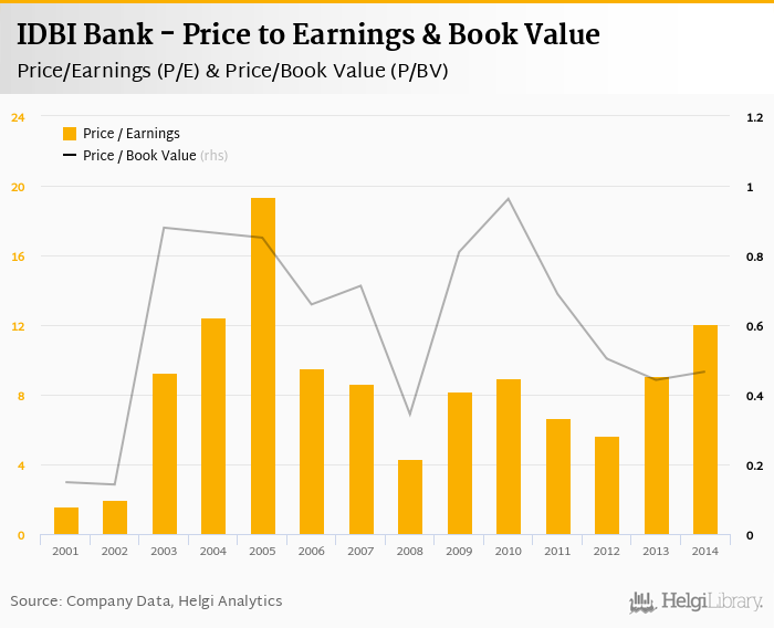 IDBI Bank stock traded at INR 71.0 per share at the end 2014 implying a market capitalization of USD 1,806 mil.