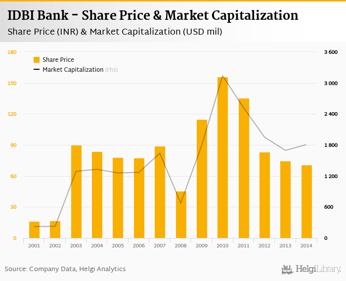 IDBI Bank stock traded at INR 71.0 per share at the end of 2014 implying a market capitalization of USD 1,806 mil.