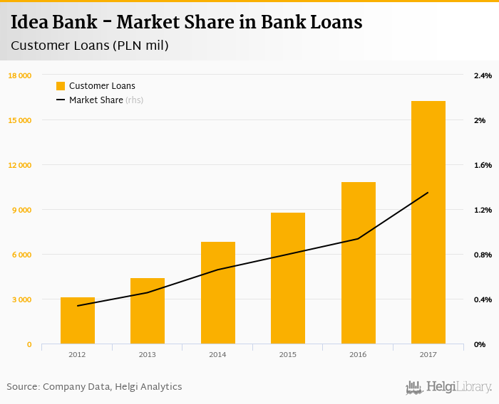 Idea Bank's customer loans reached PLN 16,279 mil in 2017, up 49.7% compared to the previous year.