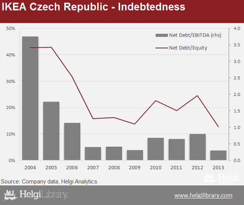 Since 2004, the Company's sales have increased more than four-fold to CZK 7.4 bil in 2013. The net profit has been on the other hand declining to "only" CZK 176 mil in 2013, or ROE of only 7.6%.