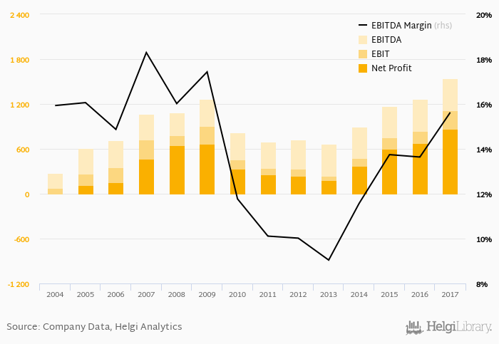 On the operating level, EBITDA reached CZK 1,546 mil, up 21.8% compared to the previous year. Over the last five years, company's EBITDA has risen 16.4% a year on average.