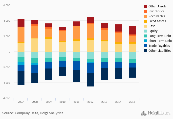 Net debt against equity is up 0.564 pp from five years ago (-1.12). The ratio against EBITDA decreased from -1.78x seen in 2010 to -2.07x.