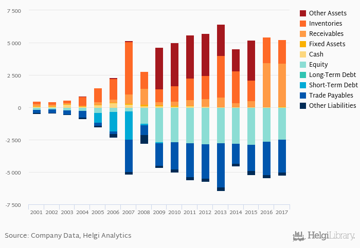 Net debt against equity is up 1.46 pp from five years ago (-2.81%). The ratio against EBITDA decreased from -0.133x seen in 2012 to -0.174x.