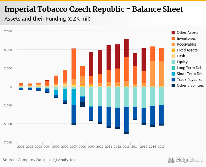 Imperial Tobacco Czech Republic's total assets reached CZK 5,230 mil at the end of 2017, down 4.09% compared to the previous year.