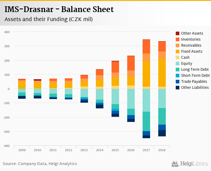 IMS-Drasnar's total assets reached CZK 334 mil at the end of 2018, down 3.85% compared to the previous year.