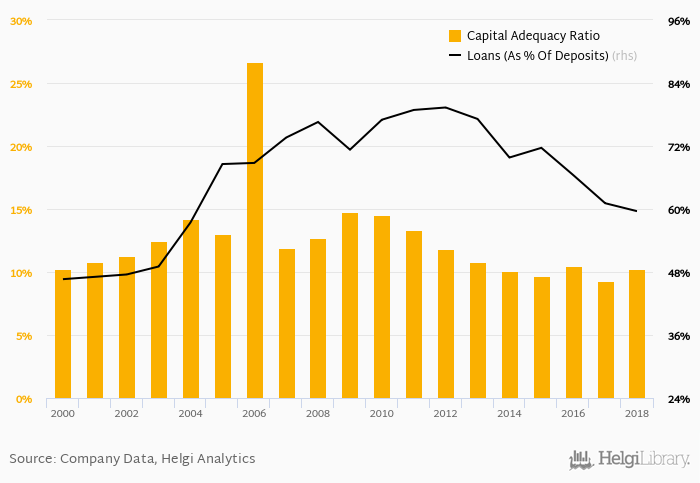Bank's loan to deposit ratio reached 59.6% at the end of 2018, down from 61.1% when compared to the previous year. Some 10 years ago, loan to deposit ratio of the bank amounted to 76.6%.