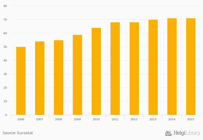 | Belgium | % | ... | ... | ... | ... | ... | ... | ... | ... | ... | ... | ... | 59.0% | 64.0% | 68.0% | 68.0% | 70.0% | |||||