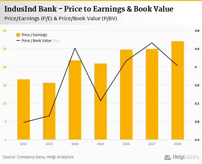 IndusInd Bank stock traded at INR 1,770 per share at the end 2018 implying a market capitalization of USD 15,371 mil.